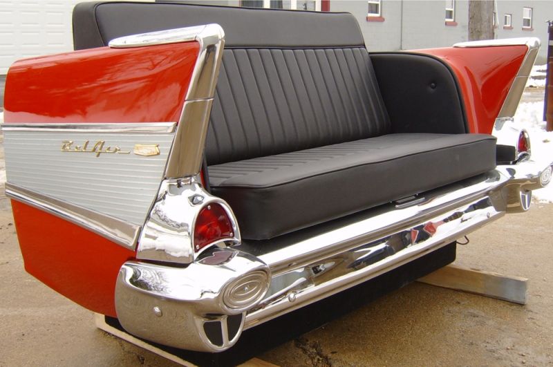 Коллекционировать ретро-автомобили могут позволить себе единицы, даже восстановление одного такого авто требует немалых расходов. К тому же, много подобных машин дошли до наших дней в виде фрагментов, например, после аварий. Хорошим применением для них является изготовление предметов интерьеров, например, мебели.