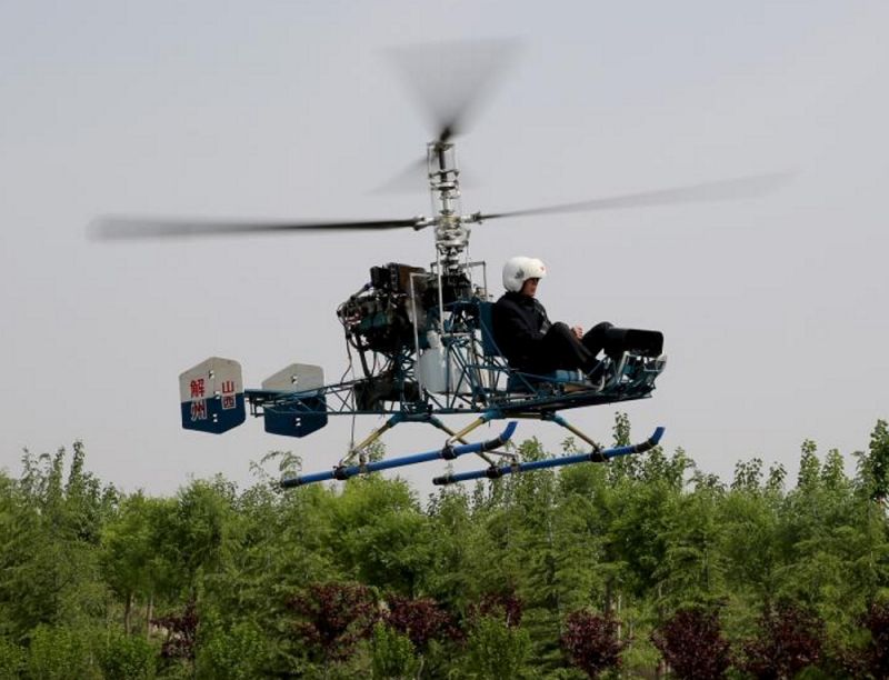 60-летний Го Лейтин летит на самодельном вертолете в г. Юньчэн в провинции Шаньси.