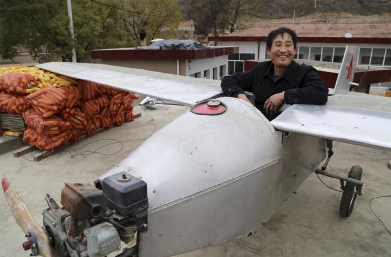 58-летний фермер Ли Цинчунь из деревни Сяхе в провинции Ляонин с помощью членов своей семьи построил самолет. Расходы на него составили $6349.