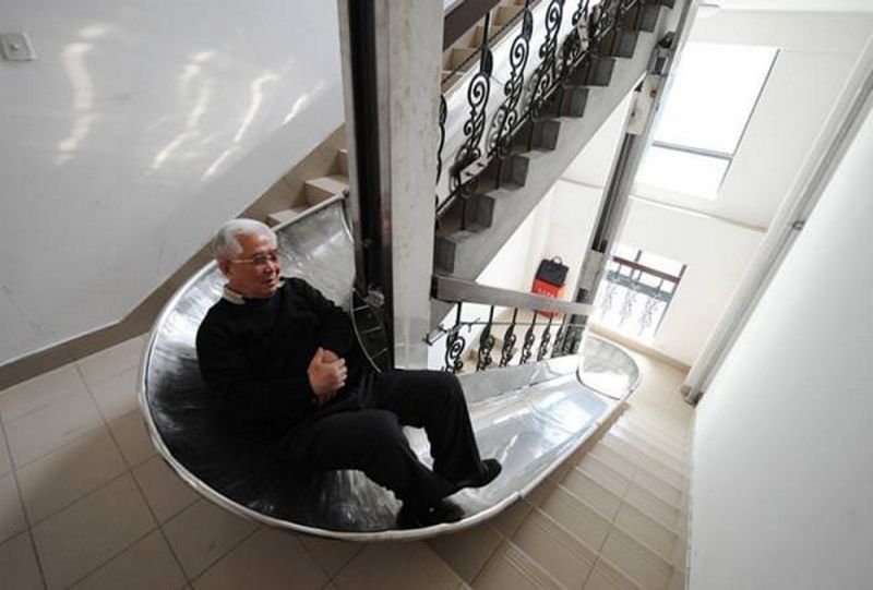 70-летний Чжоу Мяорон сконструировал в своем доме спуск в виде желоба на случай пожара.