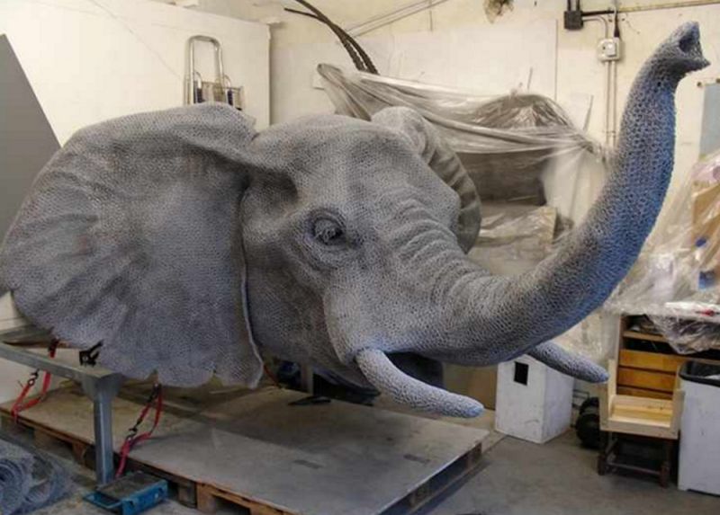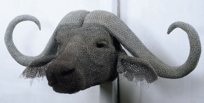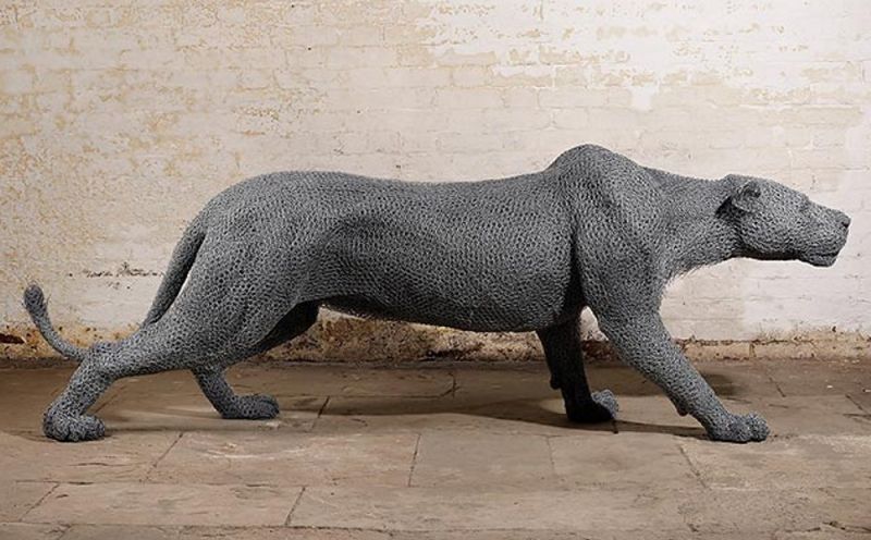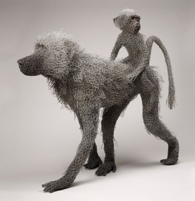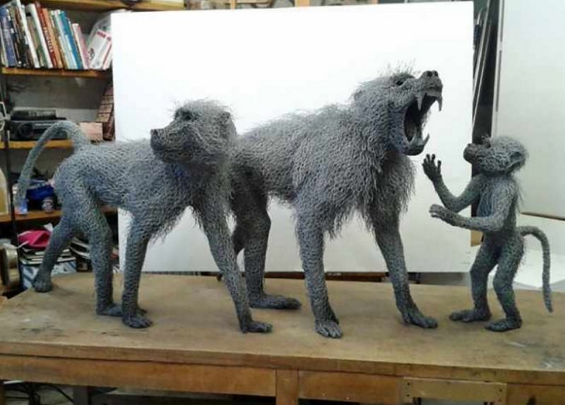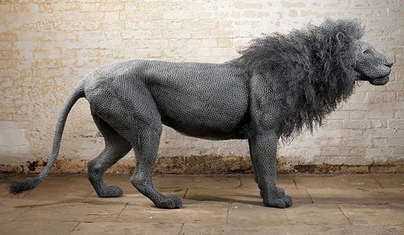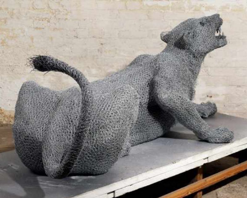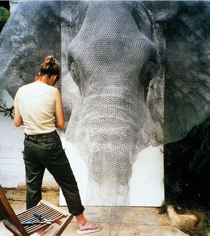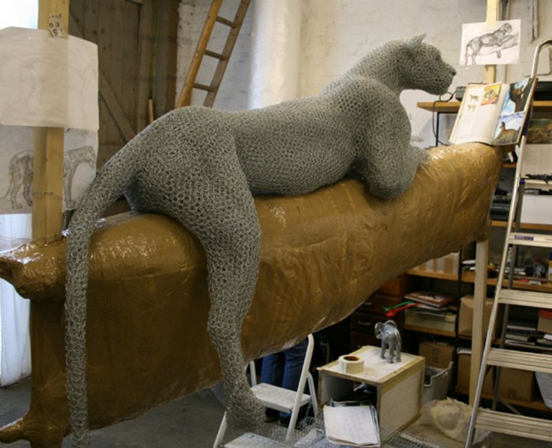 Скульптуры Кендры Хейст являются многослойными, а сетка натягивается поверх стального эмалированного каркаса. По ее словам, она много времени проводит в зоопарках, изучая особенности анатомии и мускулатуры животных.