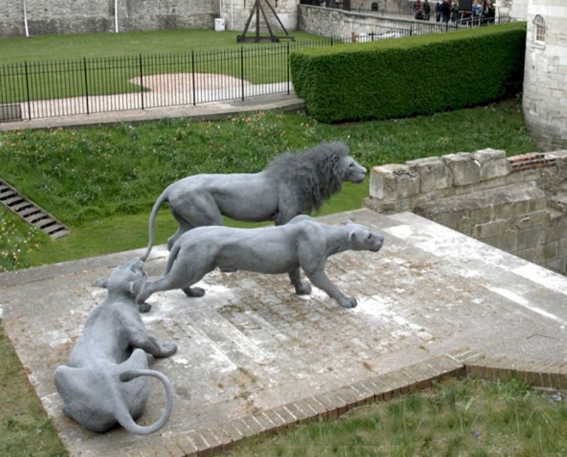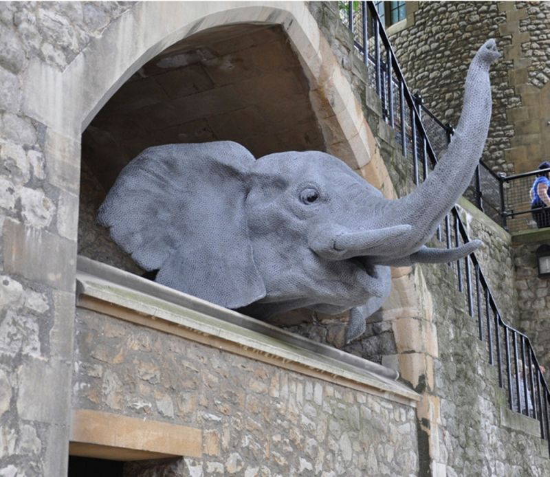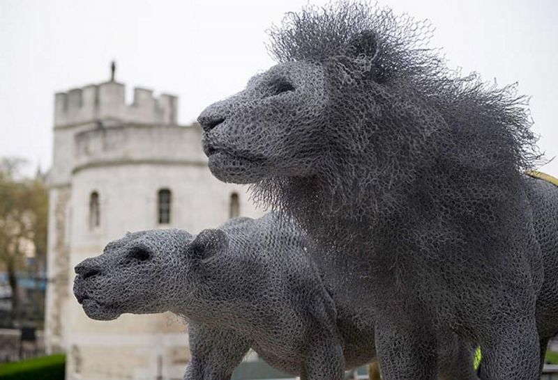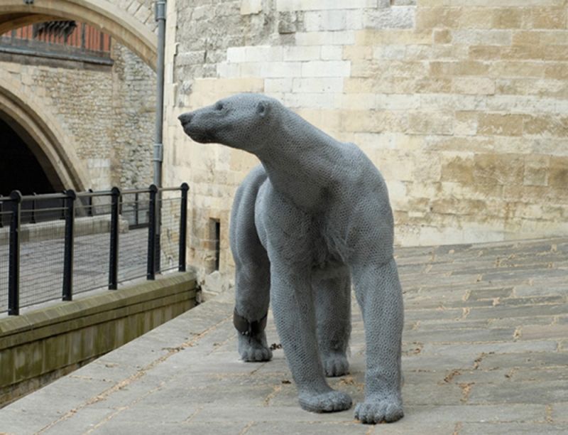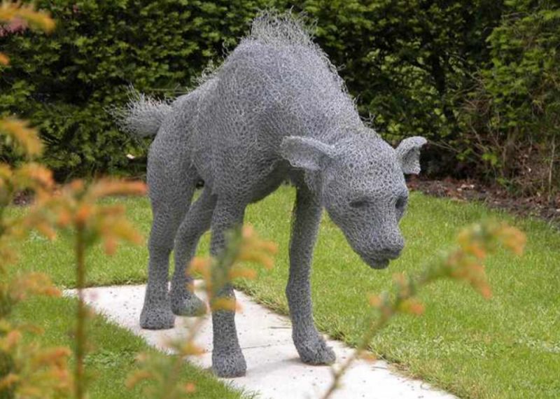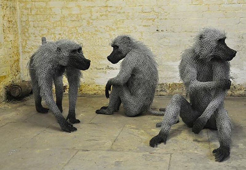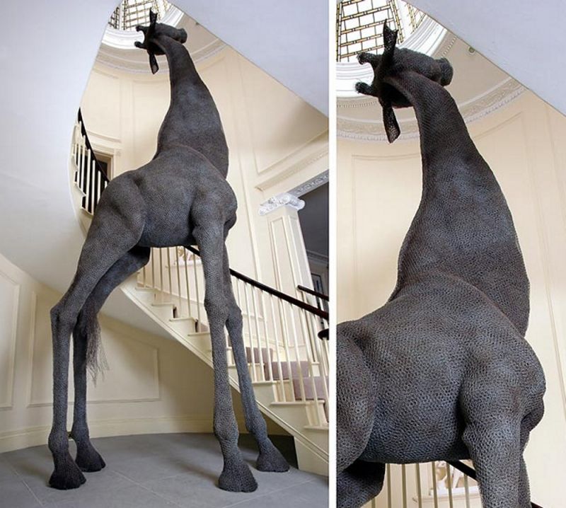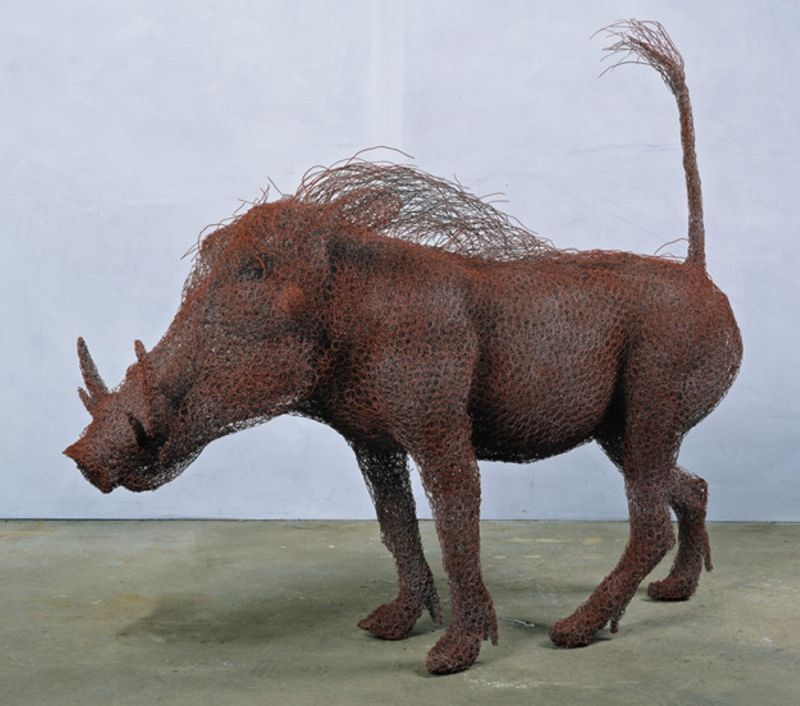 Скульптуры Кендры Хейст являются многослойными, а сетка натягивается поверх стального эмалированного каркаса. По ее словам, она много времени проводит в зоопарках, изучая особенности анатомии и мускулатуры животных.