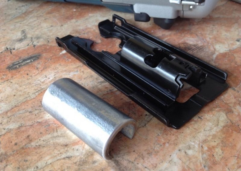 Далее для ручного лобзика нужно будет изготовить крепеж, который в то же время будет выступать в роли направляющей для изменения угла наклона пилки относительно столешницы.
