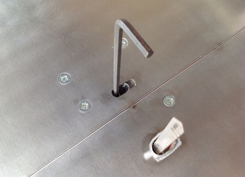 Крепеж-направляющая крепится к столешнице с помощью винтов с потайными головками.