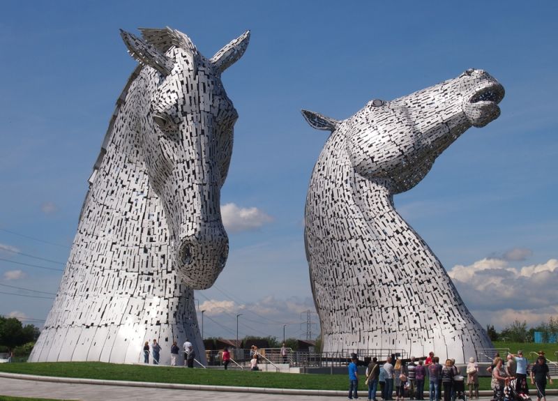 1. The Kelpies (шотл. Злые духи, подстерегающие путешественников у рек, озер в обличии коней) установлены 2013 году в городе Фолкерк в центральной части Шотландии. Конские головы выполнены из нержавеющей стали, высота сооружений составляет 30 метров, а вес – 300 тонн.