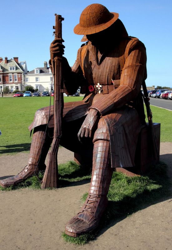 8. Tommy (Томми Аткинс, прозвище английского солдата), скульптура установлена 2015 году в небольшом городе Сиэм в графстве Дарем в Англии. Посвящена британским солдатам, погибшим в Первой мировой войны, в ее основание заложена капсула с посланием к потомкам. Высота – 287 см, вес – 1,2 тонны, материал – кортеновая сталь.